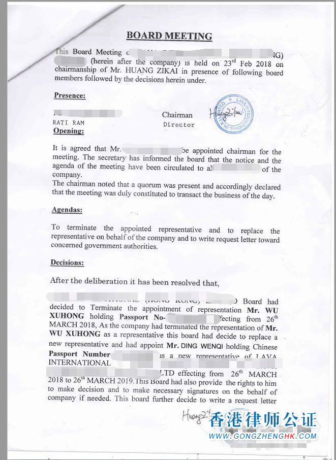 香港公司董事決議文件用于尼泊爾辦理簽證使用怎么做公證?